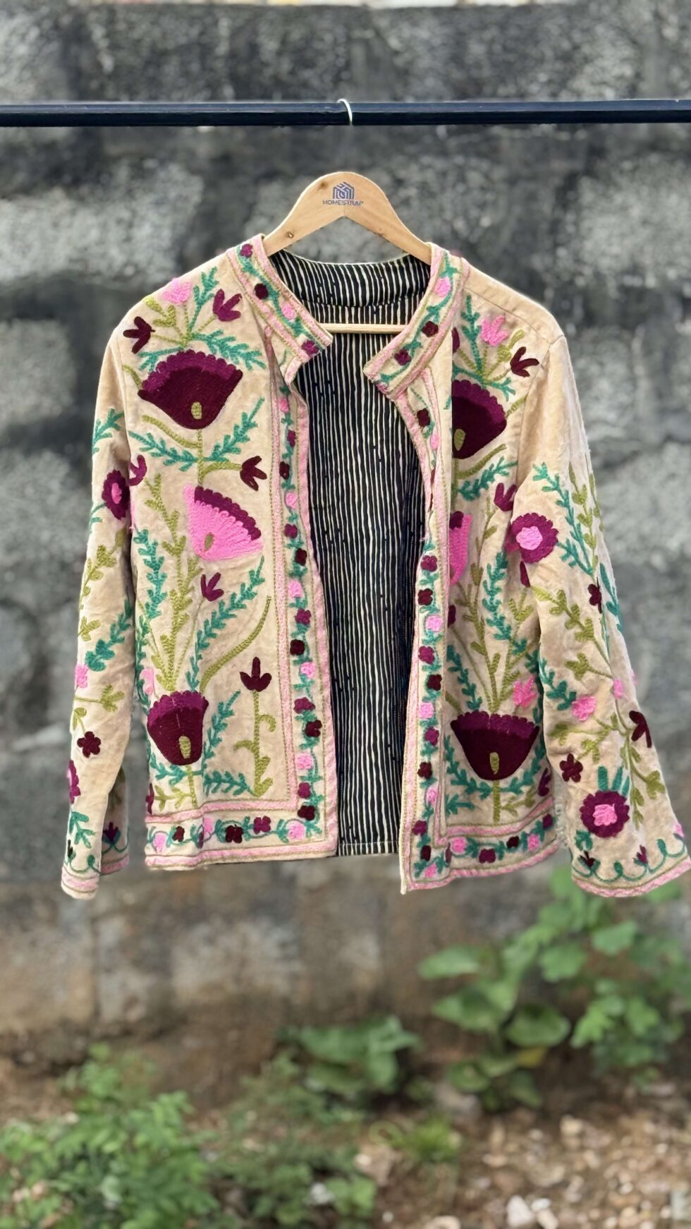 Luxurious velvet jacket featuring intricate Suzani embroidery. Perfect blend of elegance and tradition — ideal for festive and ethnic occasions.